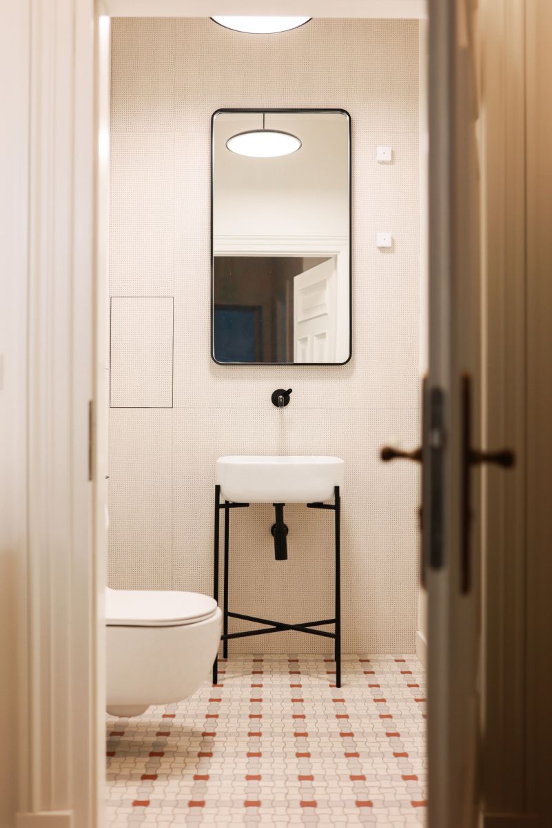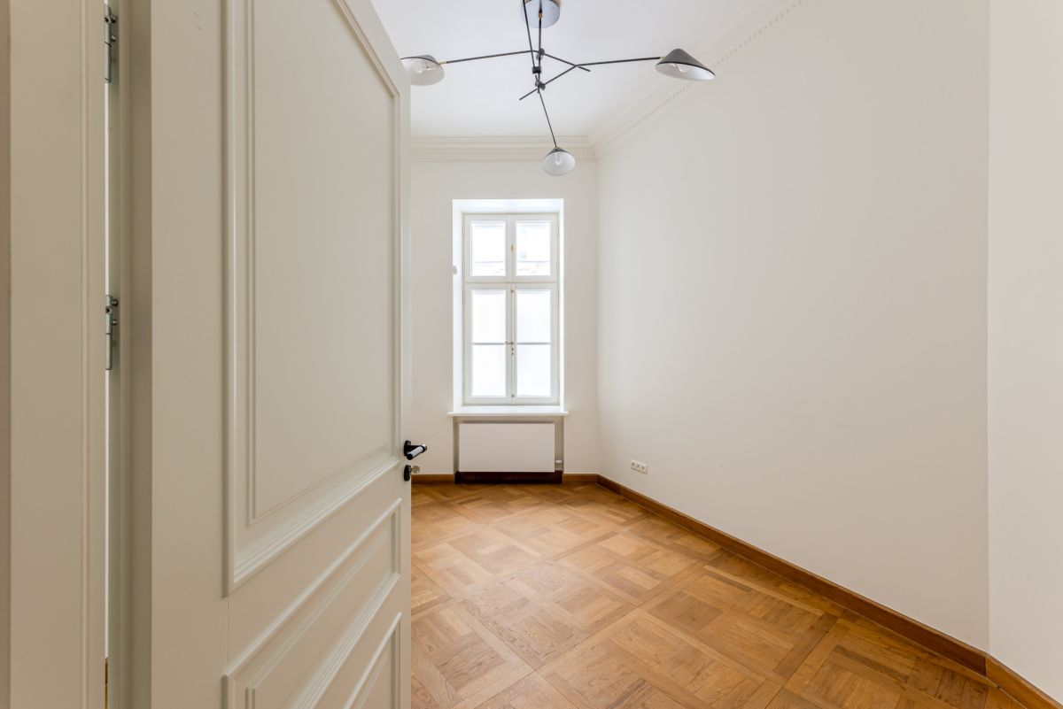 Из рецепции осуществляется переход во вторую, более камерную часть помещения, где расположены санузел и два офисных кабинета площадью 14 м² и 17 м². Их окна выходят во внутренний тихий открытый двор дома Foksal 13, обеспечивая комфортную рабочую атмосферу.