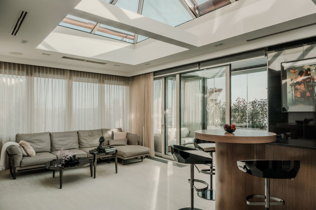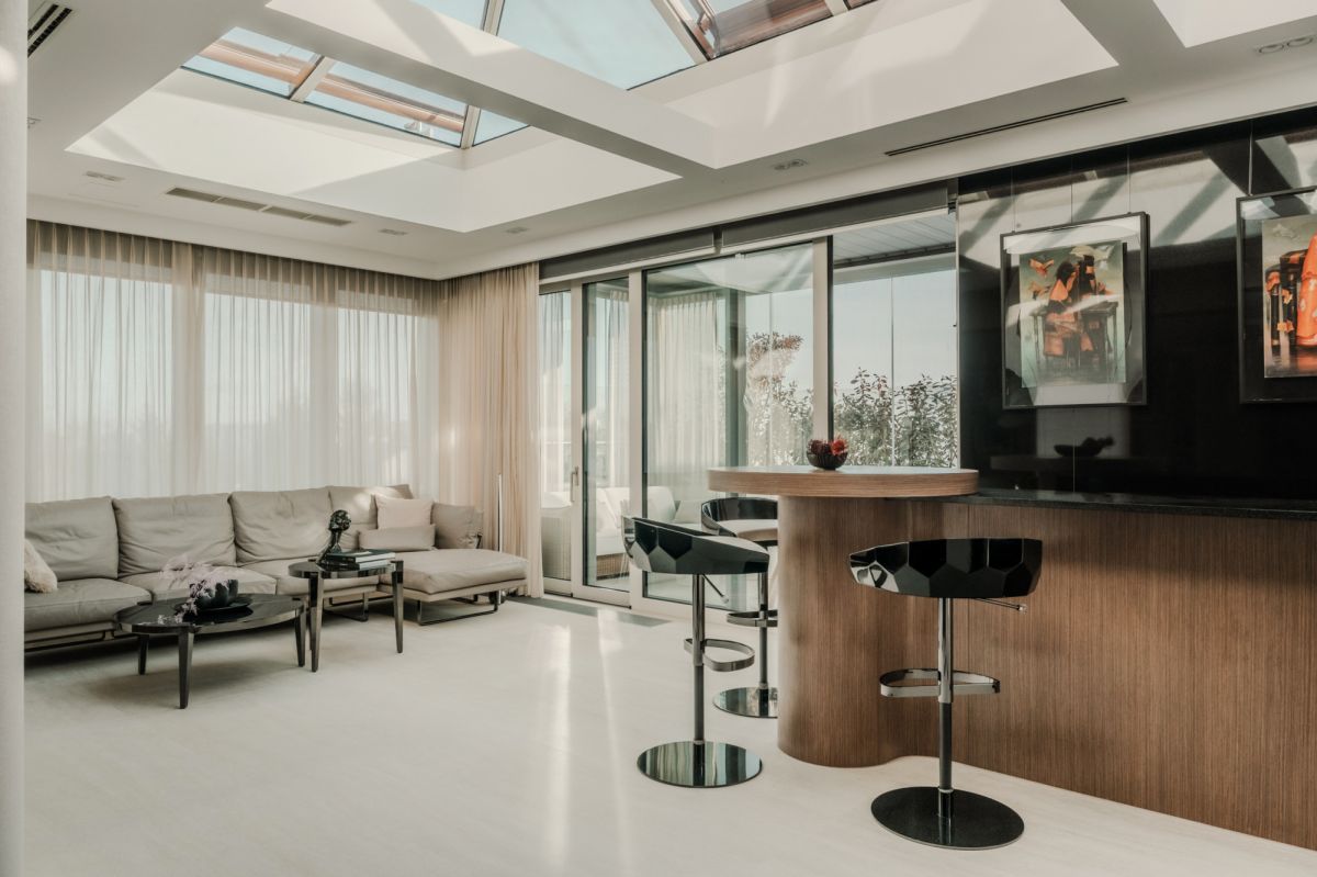 Large glazing and a well-designed layout provide excellent natural light and a strong sense of space. A built-in KNX smart home system allows control of lighting, air conditioning, blinds, and media.