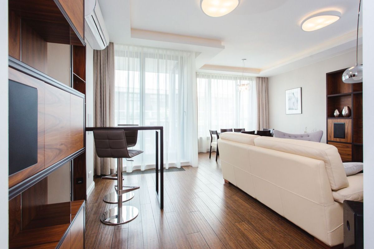 The apartment is finished in a very high standard, the living room is equipped with air conditioning.