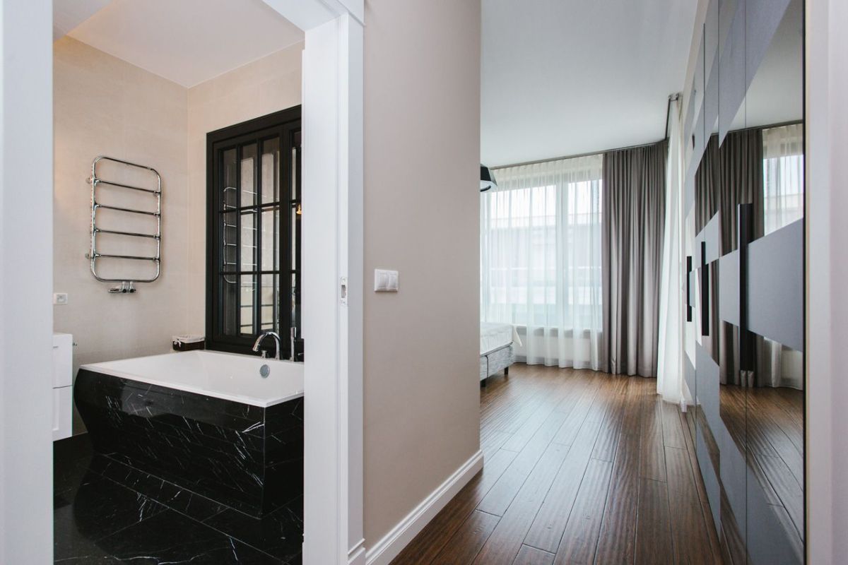 The apartment is finished with the highest quality materials: natural parquet floors, granite countertops in the kitchen, bathrooms - Italian fittings, natural stone on the floors and walls. Property equipped with all the necessary household appliances.