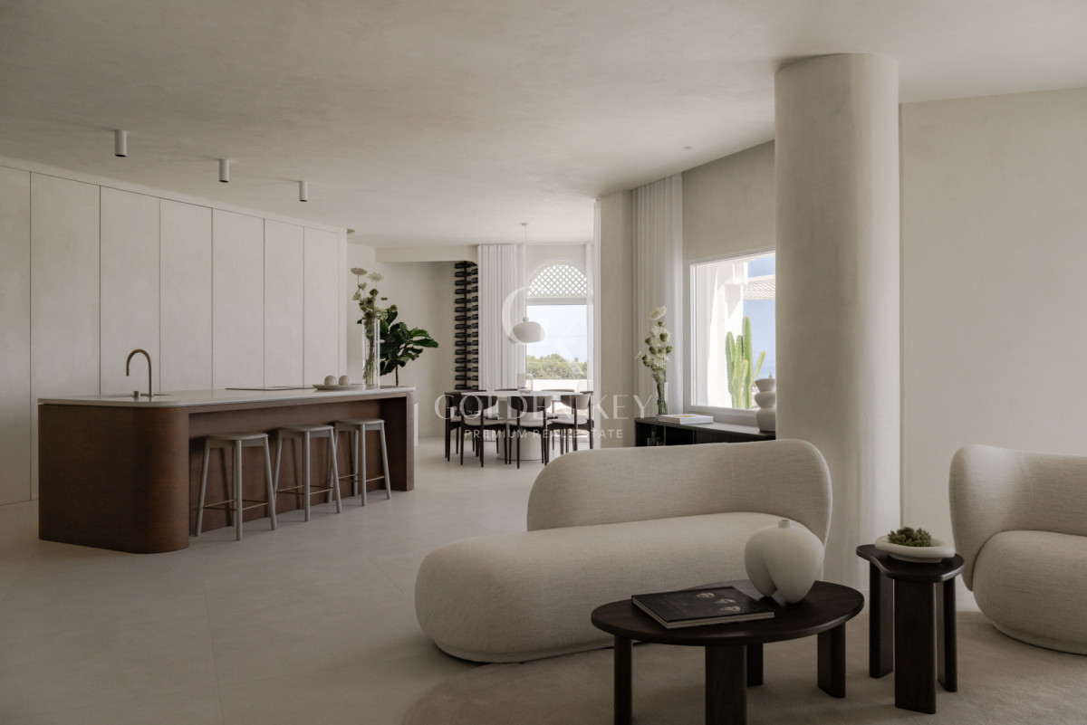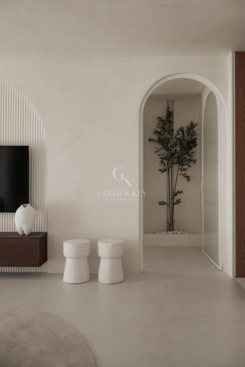 Nieruchomość znajduje się w prestiżowej, zamkniętej inwestycji i została w pełni odnowiona. Architektura inspirowana stylem śródziemnomorskim harmonijnie łączy się z eleganckimi, minimalistycznymi wnętrzami wykończonymi na zamówienie w stonowanej, ponadczasowej kolorystyce.