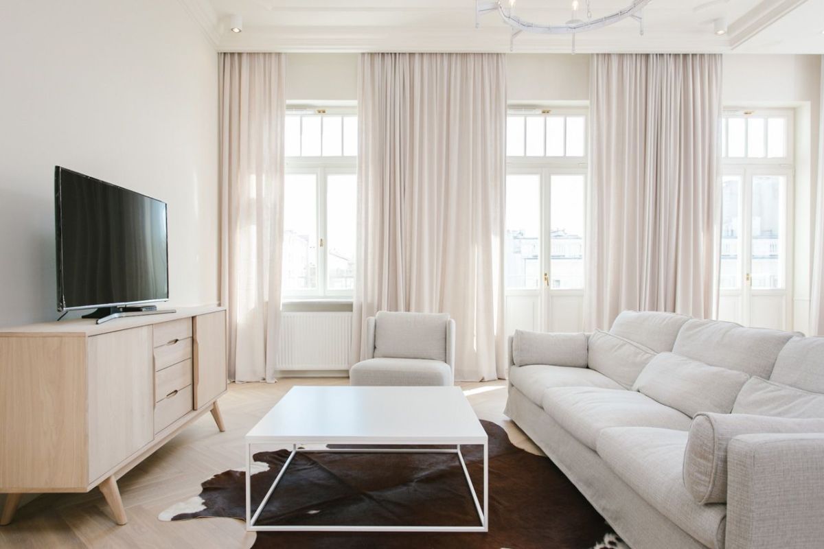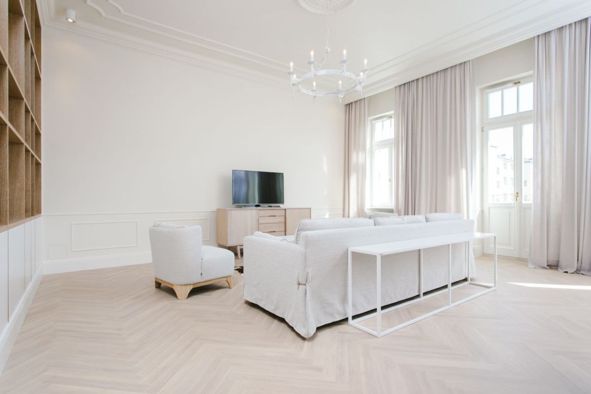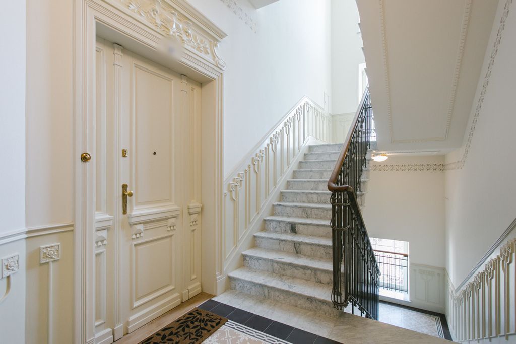 Wysokość wnętrz to aż 3,5m. Okna wychodzą na obie strony, co w połączeniu z ich nieprzeciętną wysokością sprawia, że wnętrze jest bardzo jasne i przestrzenne. Dodatkowym atutem są 2 balkony. Apartament jest klimatyzowany. Łączy on w sobie ponadczasowy, klasyczny styl ze współczesnymi udogodnieniami.