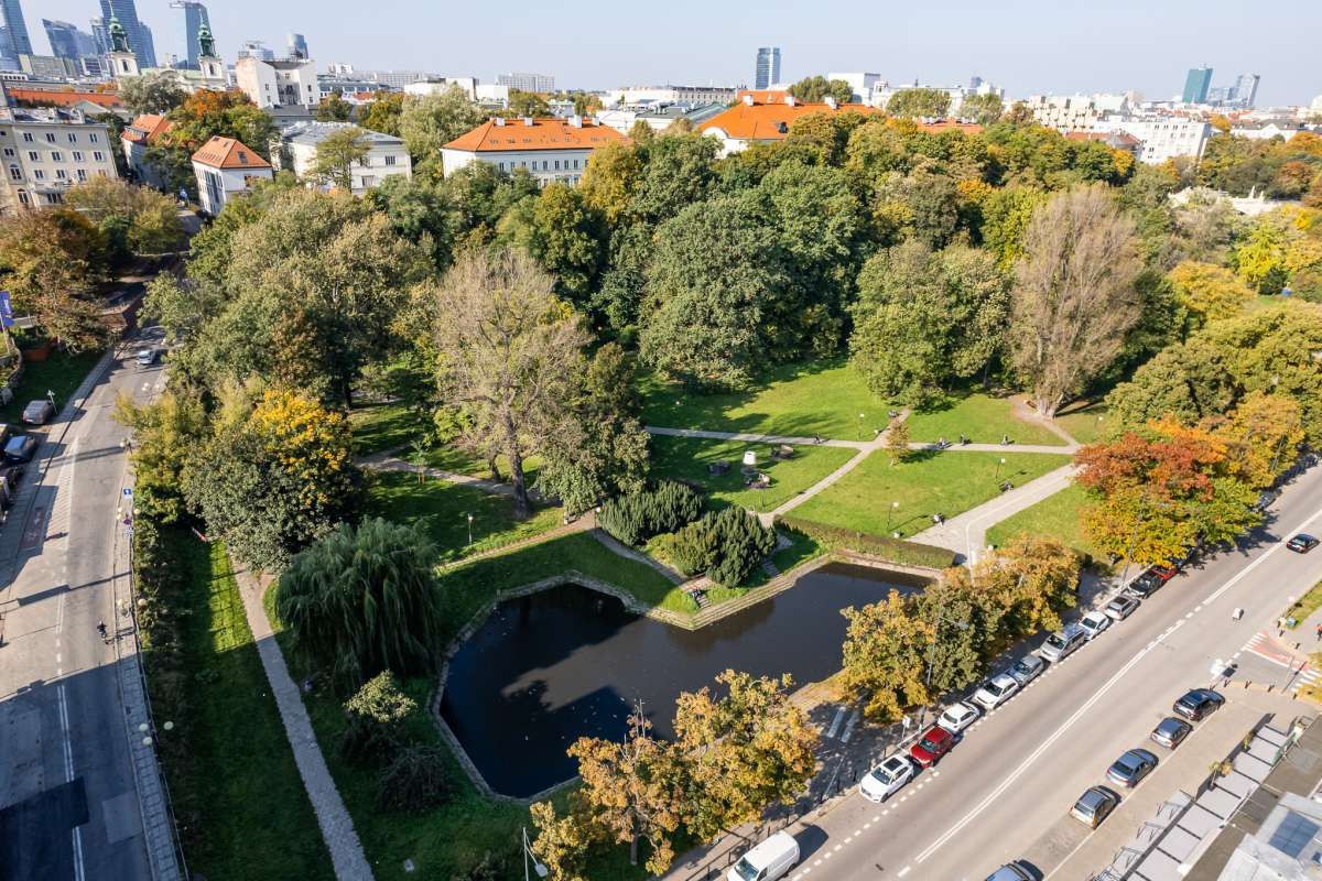 ● Widok na park i panoramę miasta