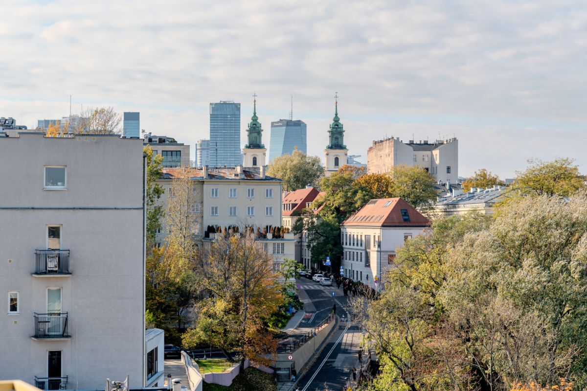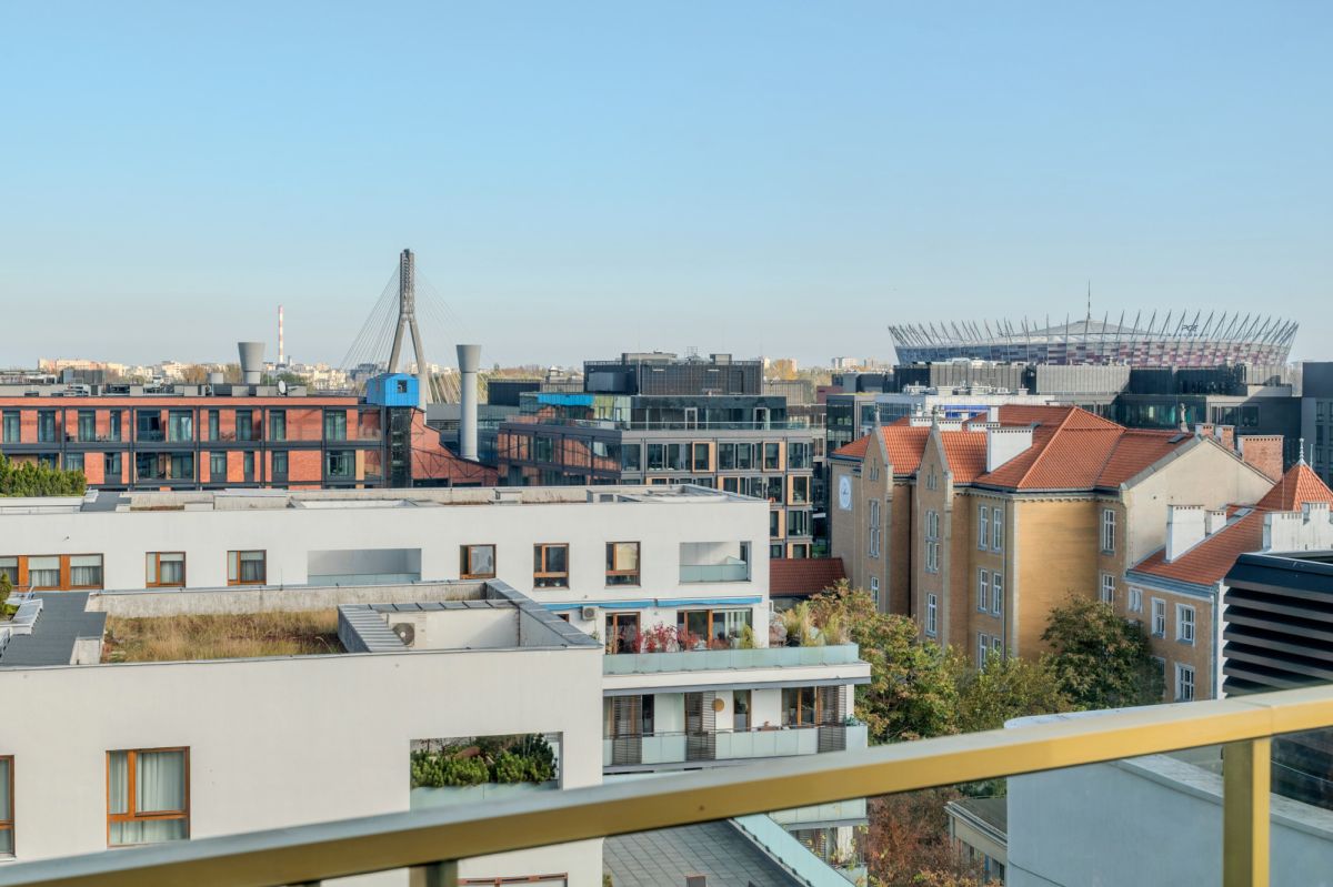Ekskluzywny penthouse na Powiślu z własnym wyjściem na dach i widokiem na park oraz panoramę Warszawy.