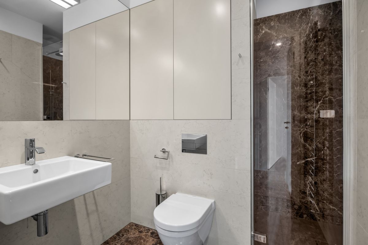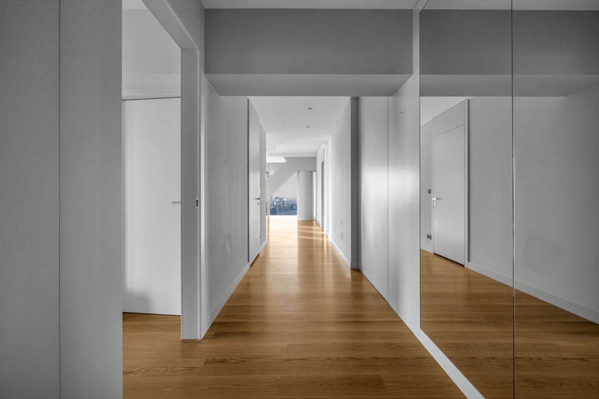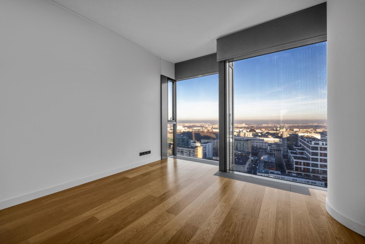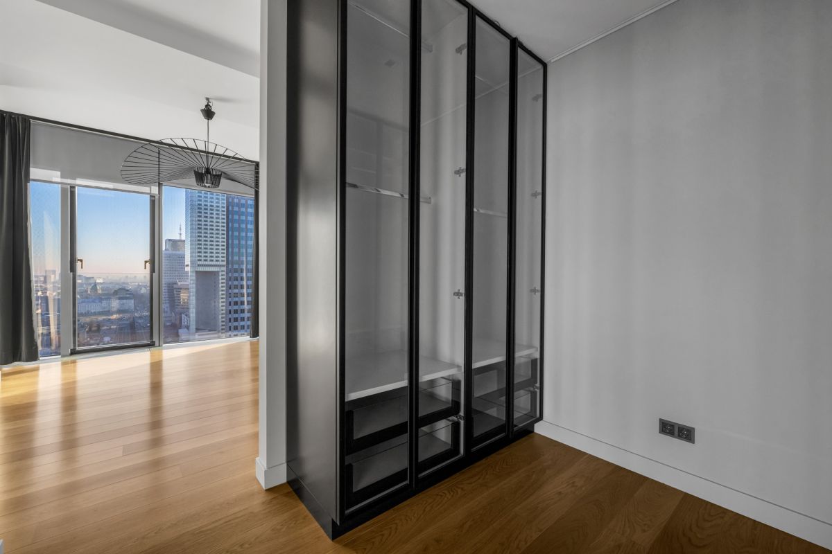 Apartament posiada klimatyzację oraz system INTELIGENT HOME TECHNOLOGY, dodatkowo automatyczne rolety wzdłuż całej długości okien. Duże okna sprawiają, że możemy cieszyć się dużą ilością światła i zapierającym dech widokiem na panoramę Warszawy.