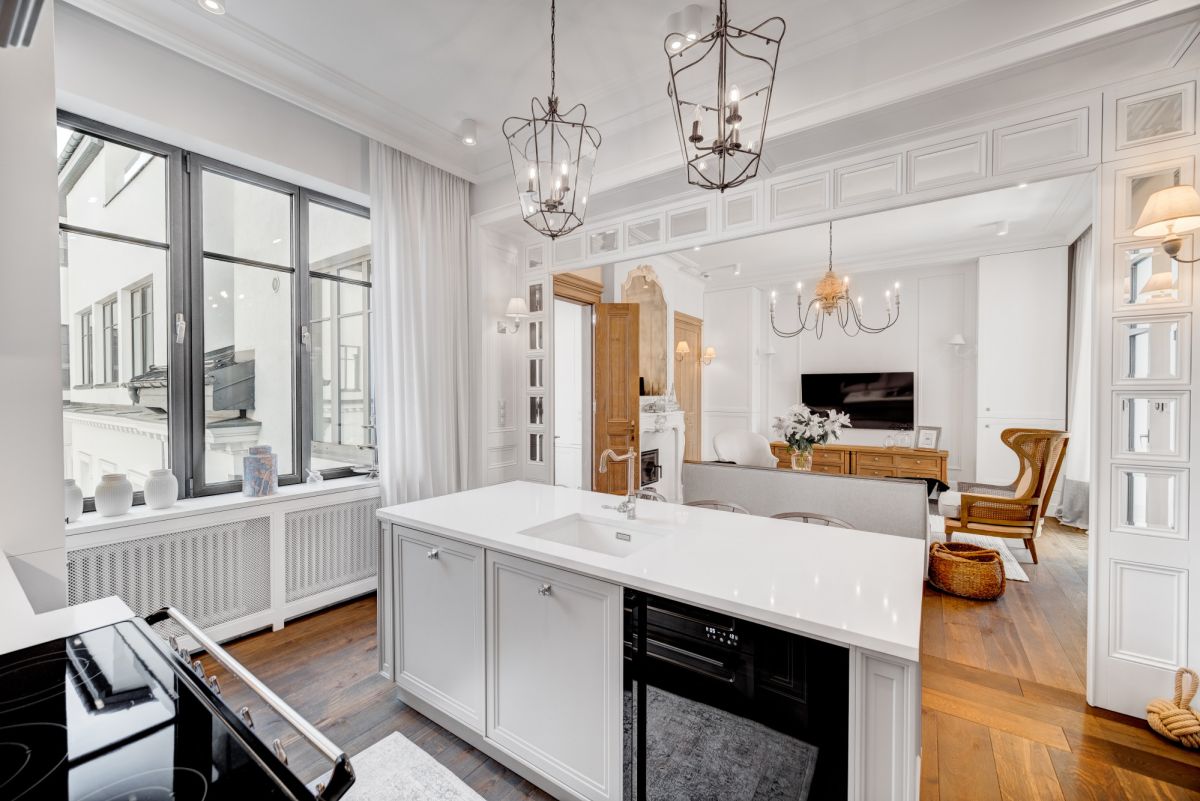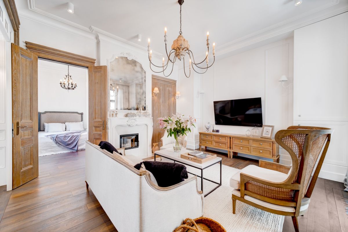 Відчуйте подорож у часі - інтер'єр, розроблений відомою архітектурною студією, гармонує з архітектурою будівлі 19 століття, виконаної за найвищими стандартами. Усе це доповнюється сучасними технологічними засобами, напр. кондиціонер у всіх кімнатах. Квартира задовольнить не тільки естетичні вимоги навіть найвимогливіших людей, а й потребу в комфорті.