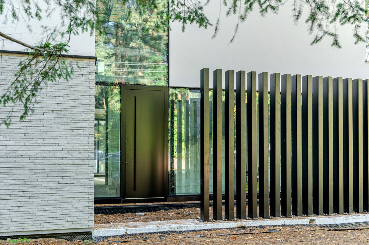 Будинок площею 341 м², розташований на прекрасній кутовій ділянці площею 2204 м², вирізняється вражаючою кількістю скління — близько 230 м², що наповнює інтер’єр природним світлом і створює гармонійний зв’язок між архітектурою та навколишньою природою.